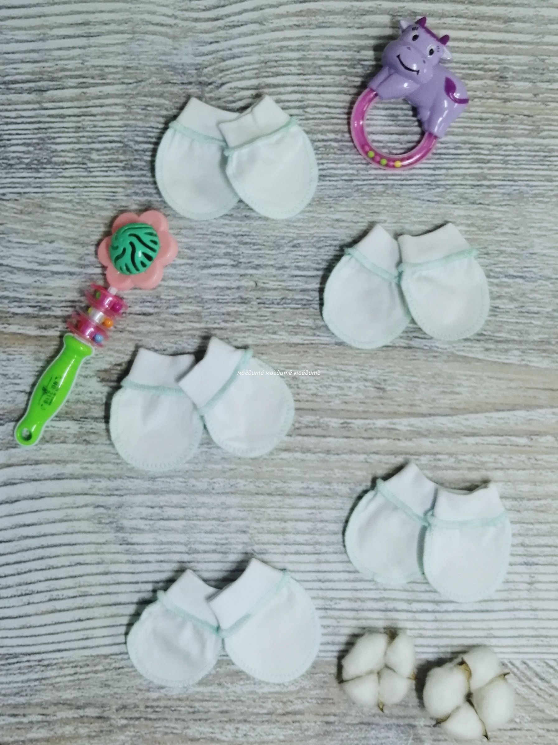 "МоёДитё" царапки кулирка белые + мята ЦК018 "Гардения" в Калиниграде